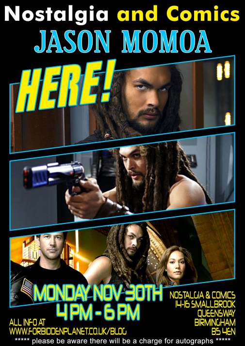 Если случайно загляните в Бирмингем в понедельник, 30.11, в книжном магазине Ностальгия & Комиксы (Nostalgia & Comics) вас встретит Кхал Дрого aka Ронон Декс («Звёздные Врата Атлантида») aka Джейсон Момоа, который с радостью (за умеренную плату) даст автограф. Для пропустивших — подобный аттракцион можно будет застать в четверг 3.12 в Белфастском филиале сети Forbidden Planet.